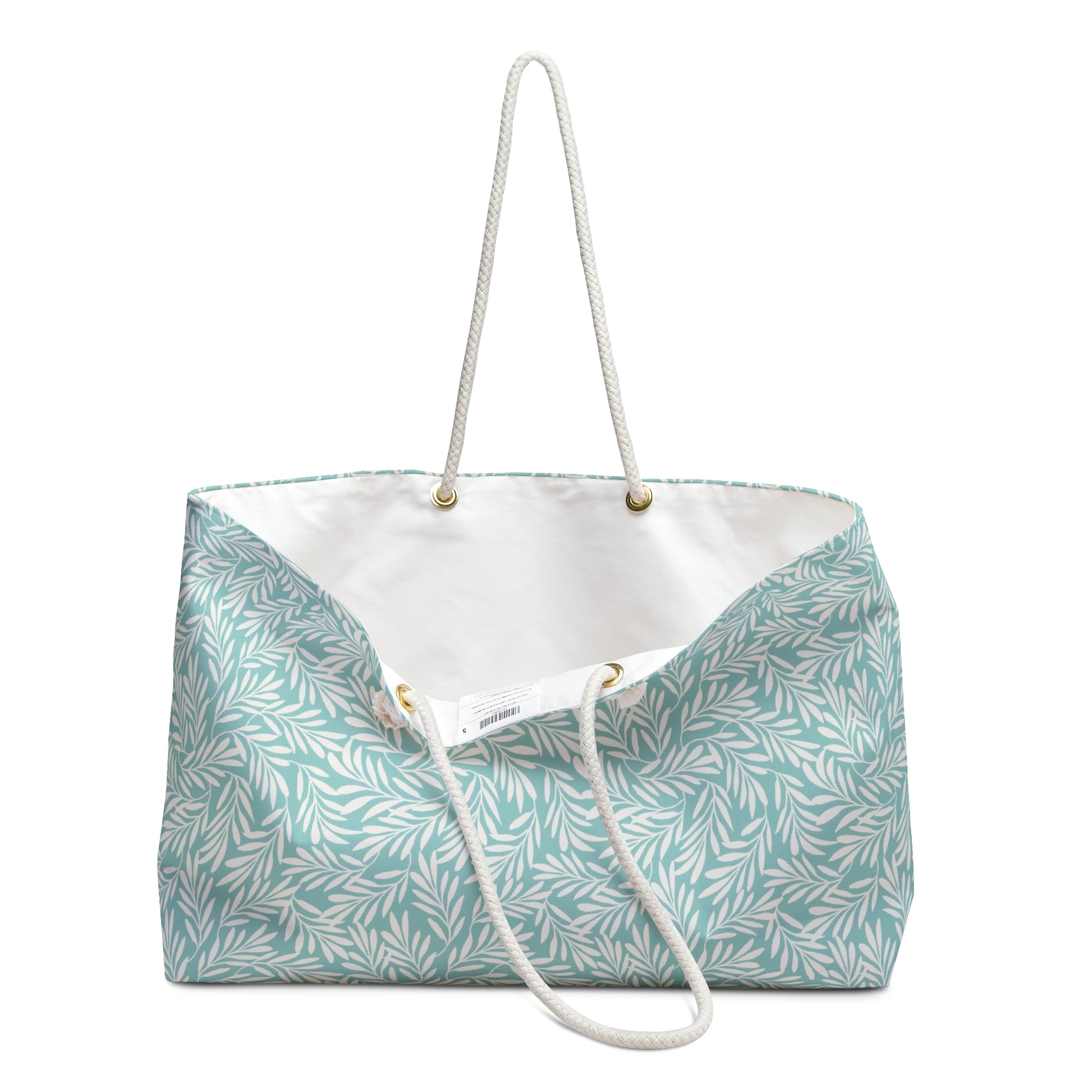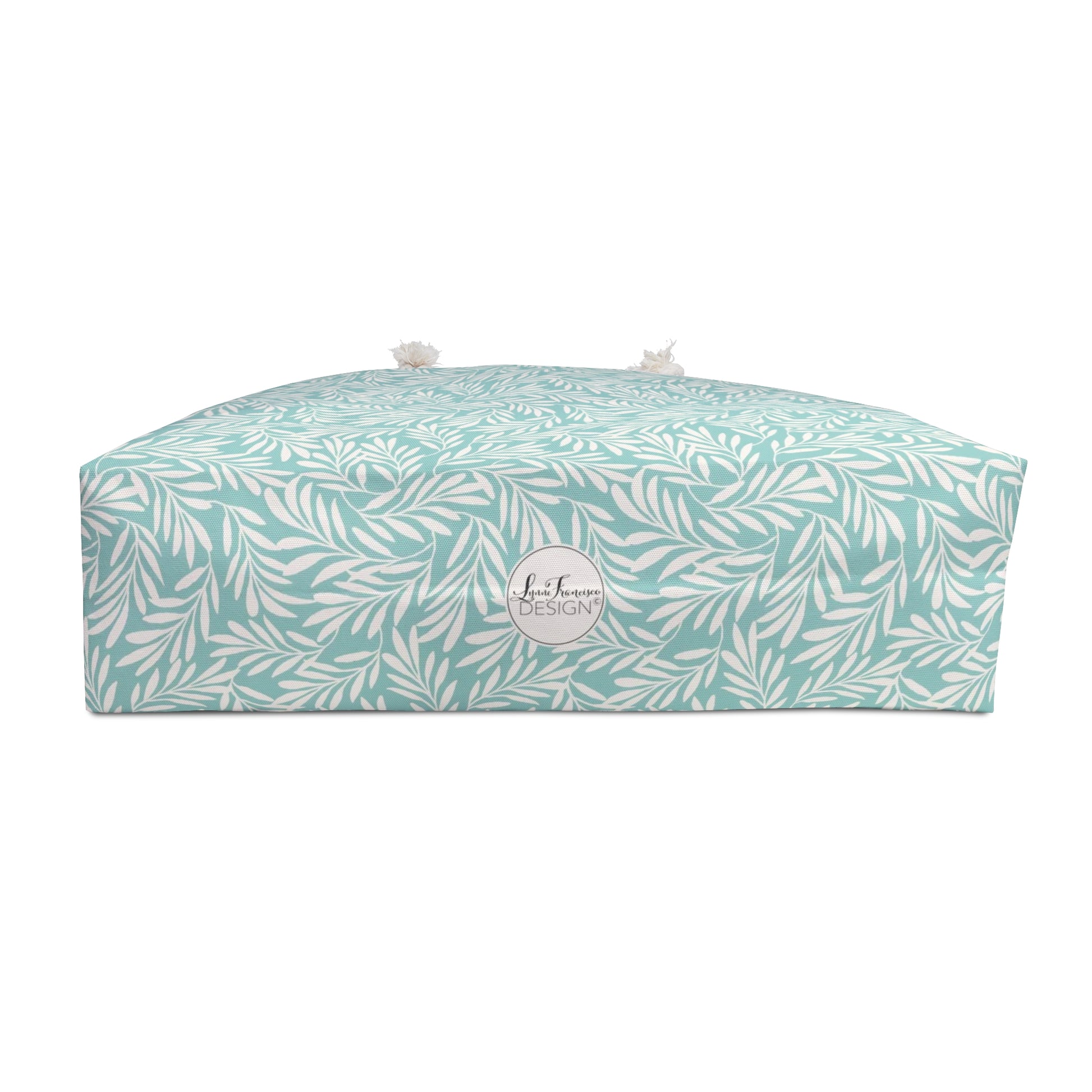 Aqua Green & Cream Leaves Large Tote Bag #ALF