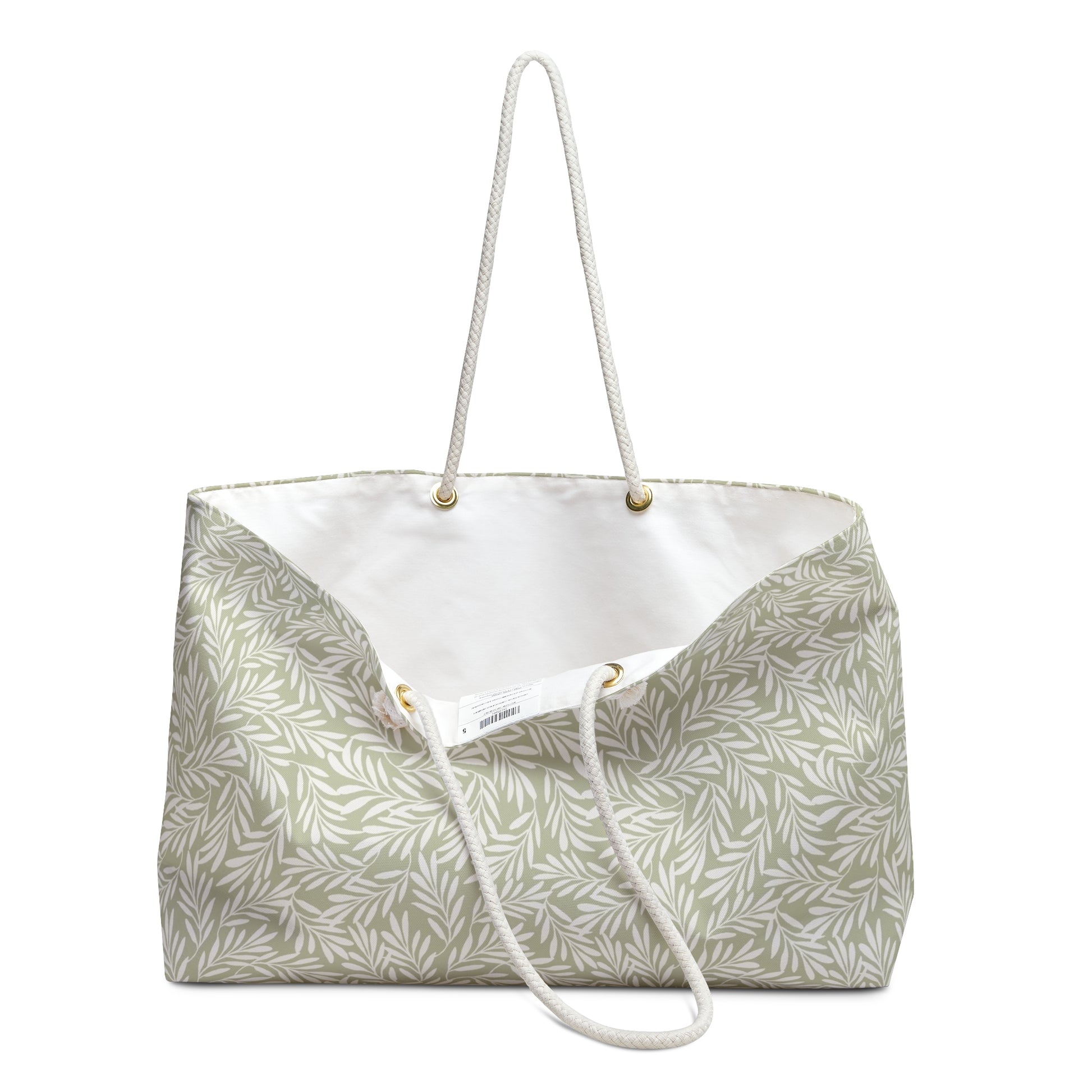 Lt Green & Cream Leaves Large Tote Bag #LTGLF